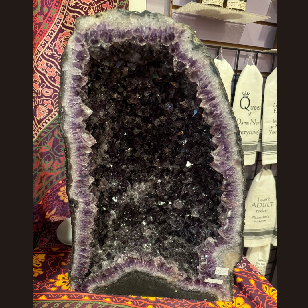 This incredible Amethyst Cathedral stands 18" tall is 12" wide and has a depth of 6.5".